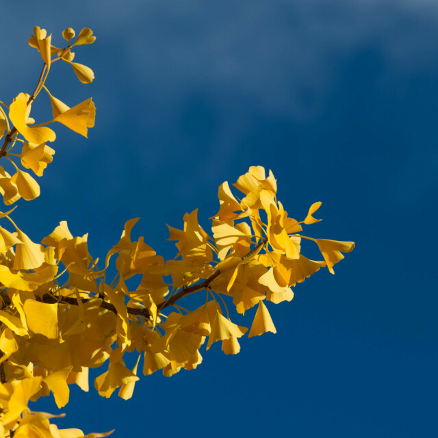 @sarble @meyltje on of my favorite things in autumn, the yellow of ginkgo leaves against a blue sky.