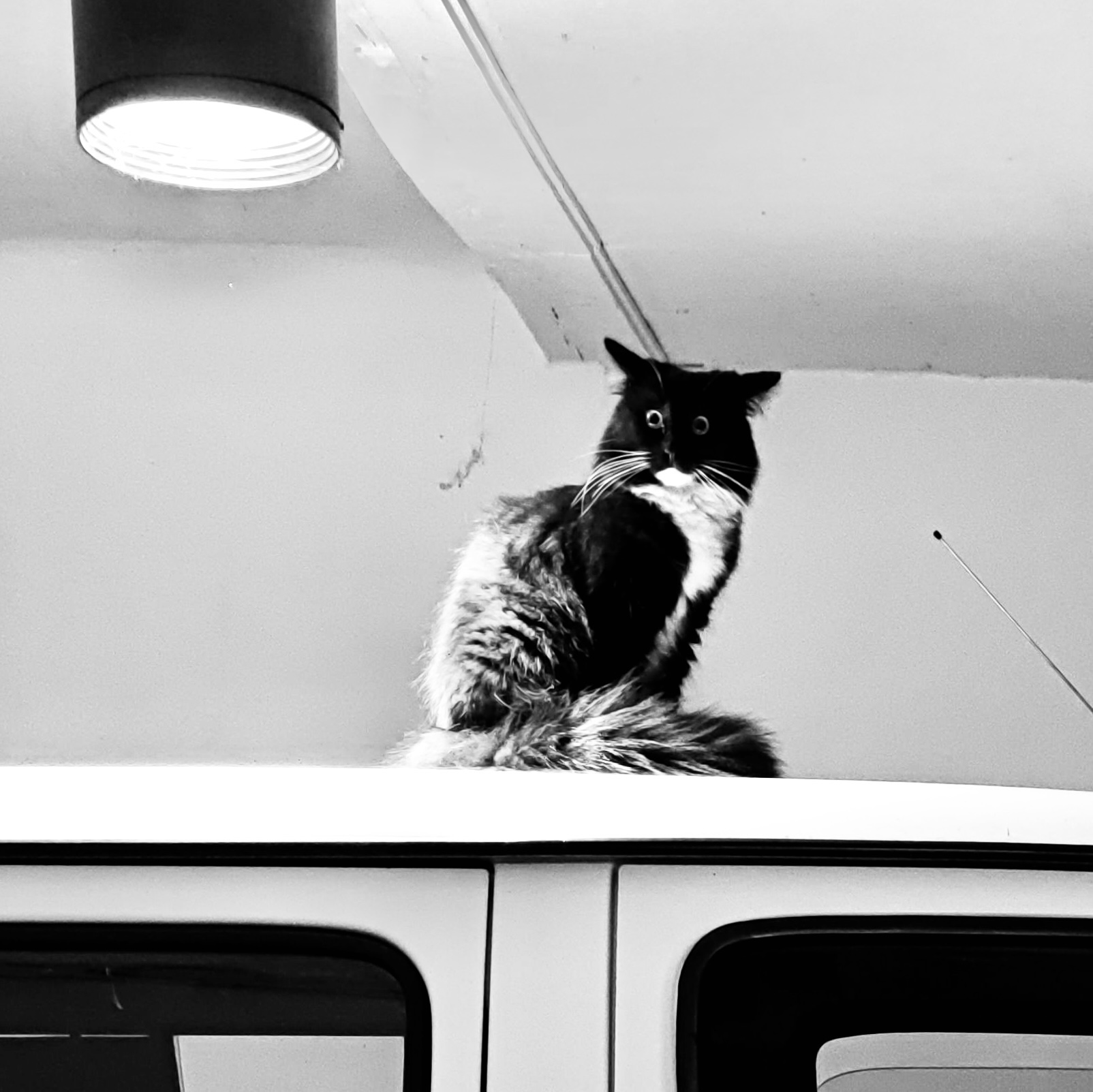 @FotoVorschlag@mastodon.social 'Montagsgesicht' #FotoVorschlag Da ich mich lieber nicht selber zeige möchte ich stellvertretend dieses Montagsgesicht anbieten. #photography #myphoto #blackandwhite #blackandwhitephotography #monocrome #cat #cats #pets #catsoffediverse #catsofmastodon #garage #car #contrast